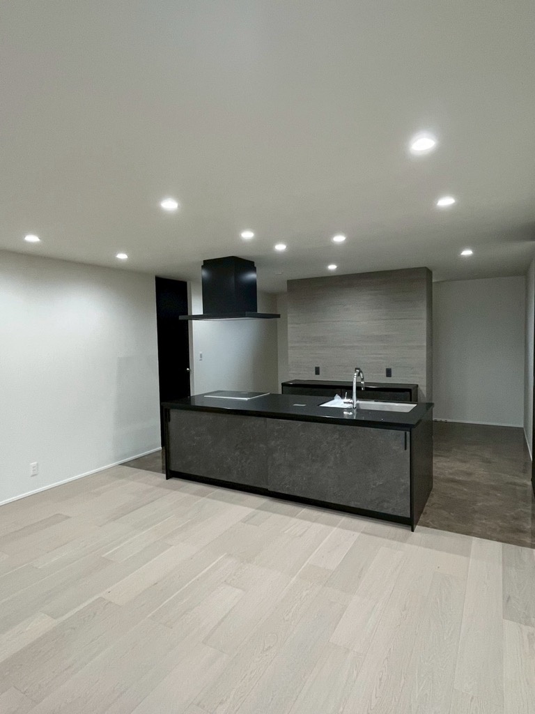 広々としたリビングは28畳あり、キッチン、ソファー、ピアノもゆったり置けて、家族が一緒に過ごせます。