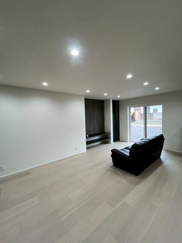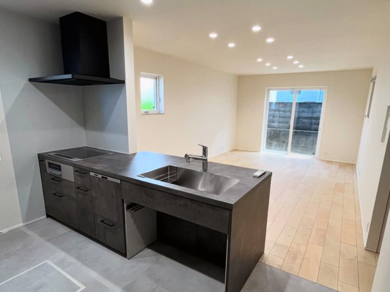 広々としたリビングは28畳あり、キッチン、ソファー、ピアノもゆったり置けて、家族が一緒に過ごせます。